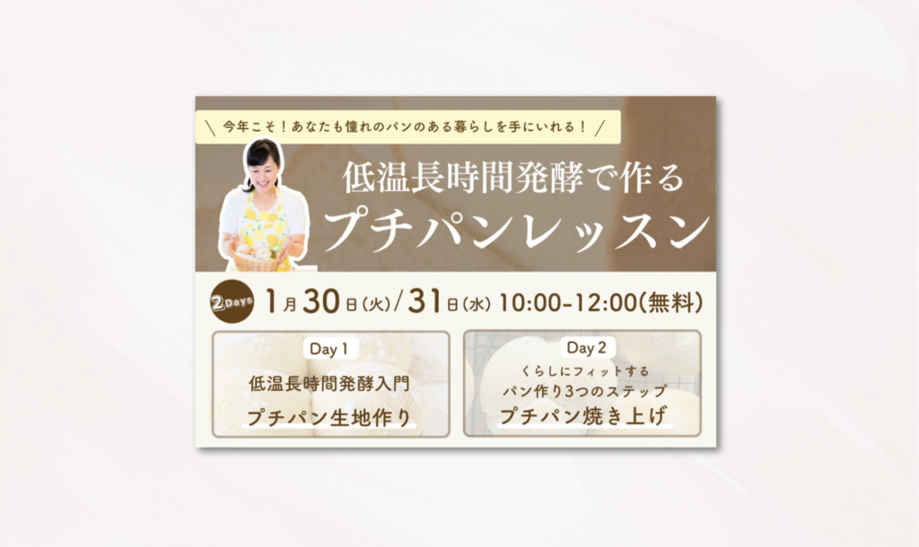 【制作実績】制作物:リッチメニュー(低温長時間発酵パン講師の方)ツール:Canva期間:3日